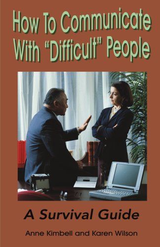 How to Communicate With "Difficult" People has answers to these questions and more. Based on the thousands of training sessions that Anne Kimbell and Karen Wilson have done with clients from major corporations all over the country. This book reaches into the back drawers of office politics and tells you what to say and how to say it to extricate your self from difficult situations. Now in its second edition, this book has helped people of all ages stay on top in the office and at home. (Published in April 2001) |